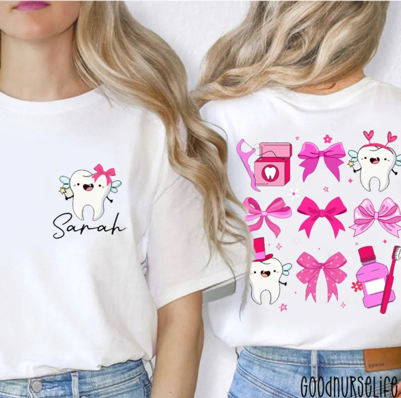 Personalized Cute Dentist Coquette Bow Two Sided T-Shirt